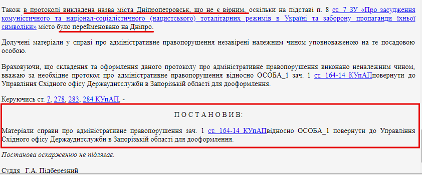 Об этом идет речь в постановлении Кировского районного суда г.Днепр.